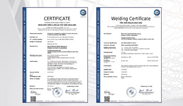 鋼結(jié)構(gòu)制作、安裝一級資質(zhì),通過了ISO9001-2000質(zhì)量管理體系的認(rèn)證、ISO14000環(huán)境管理體系認(rèn)證、ISO18000職業(yè)健康安全管理體系認(rèn)證以及EN1090認(rèn)證,美國AISC認(rèn)證。客戶眾多